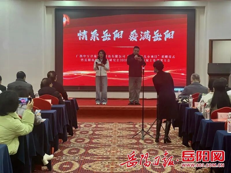2026年3月8日下昼,“情系留守·爱满岳阳”——广西中宝泽瑞生物本领有限公司“关爱岳阳留守儿童神气”捐赠庆典暨岳阳市婚配家庭连系会2026年高质料发展职责部署大会举行。来自关连部门、社会组织、公益东说念主士及连系会会员代表等140余东说念主都聚一堂,共同见证爱心捐赠,商酌推进岳阳婚配家庭与未成年东说念主关爱职业高质料发展。