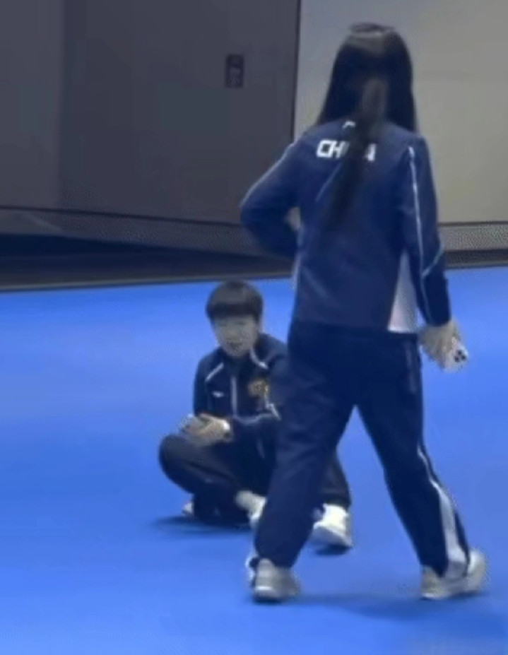 刚在赛场上4-1打败王曼昱,拿来宇宙杯历史首位女单三连冠的孙颖莎,绝对莫得冠军架子,就在受奖台边,径直马虎地起步当车在赛场的蓝色地胶上,垂头专注刷手机。