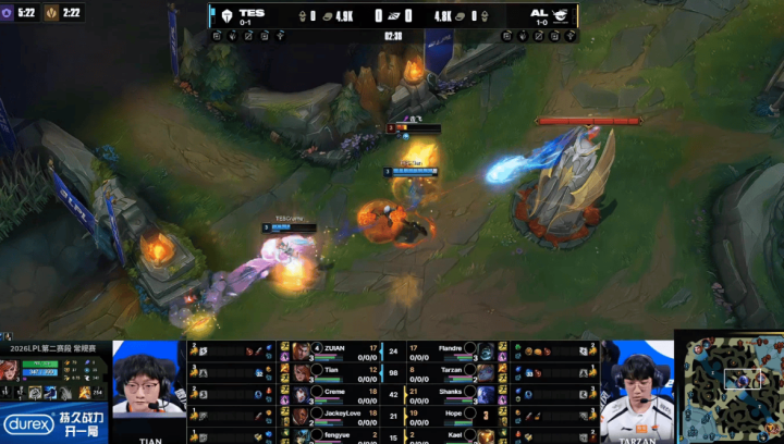 虎扑04月05日讯[GAME2]TES蓝色方、AL红色方