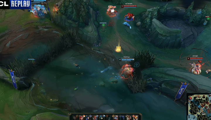 22分钟,小天卡视线捏到瑞兹,TES击杀掉AL中野趁势拿下大龙