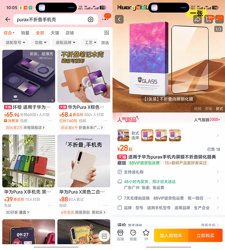 值得一提的是,不少Pura X用户热衷于使用内屏,以至在网上出现了Pura X不折叠手机壳、不折叠钢化膜等产物,彻底是手脚一台阔屏直板机使用。这次Pura X Max一定进度上亦然筹议了这些使用场景。