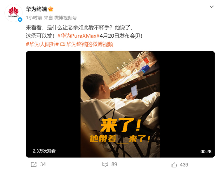 随后,华为末端也发布了一段视频,并示意“是什么让老余如斯如获至珍?”并展示了更多新机的使用场景。