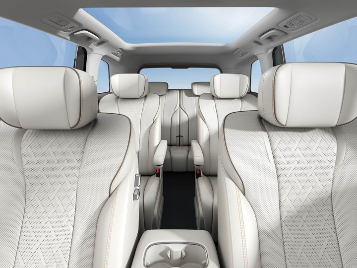 座舱遴选五屏三维空间交互系统,包含前排15.7英寸OLED双联屏和后排21.4英寸3K大屏,配备2160瓦7.3.4全景声息响。悬架搭载800V全主动悬架,豪华建立全面拉满,就等起售价了。