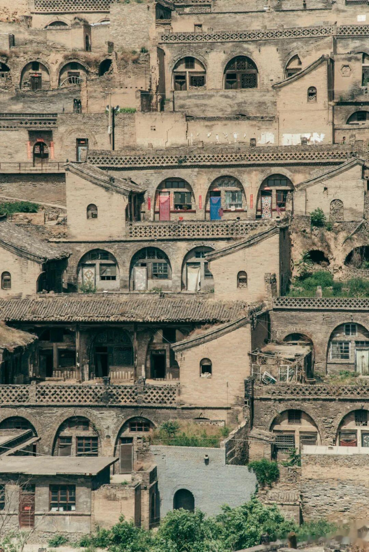 好多东说念主对黄土高原的印象,停留在艰辛、残酷,可确凿站在董家岭村所在的山梁上,望着目前壮阔的黄地沟壑,看着依山势层层排布的窑洞民居,才会昭彰这片地皮藏着的力量。村子就坐落在吕梁山脉的山坳里,背靠高山,面朝沟壑,视线开朗得让东说念主心里敞亮,一行排窑洞顺着山坡参差有致地铺张开来,莫得刻意的雕塑,统统依着地形而建,和周围的黄土、山峦抱成一团,莫得涓滴违和感。那种视觉上的震荡,根底不是看相片能体会到的,只好切身站在这里,吹着山间的风,看着漫山的古朴院落,才能澄澈感受到,古东说念主在这片地皮上安家落户,是奈何与当然妥洽共生的。