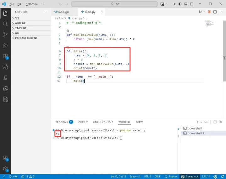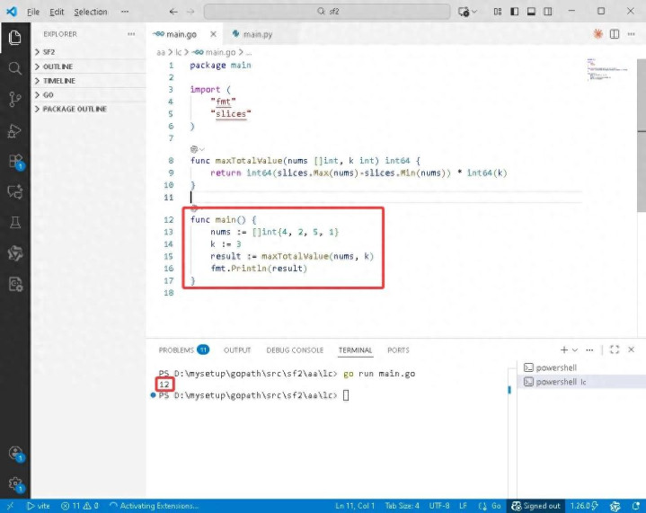 returnint64(slices.Max(nums)-slices.Min(nums)) * int64(k)
