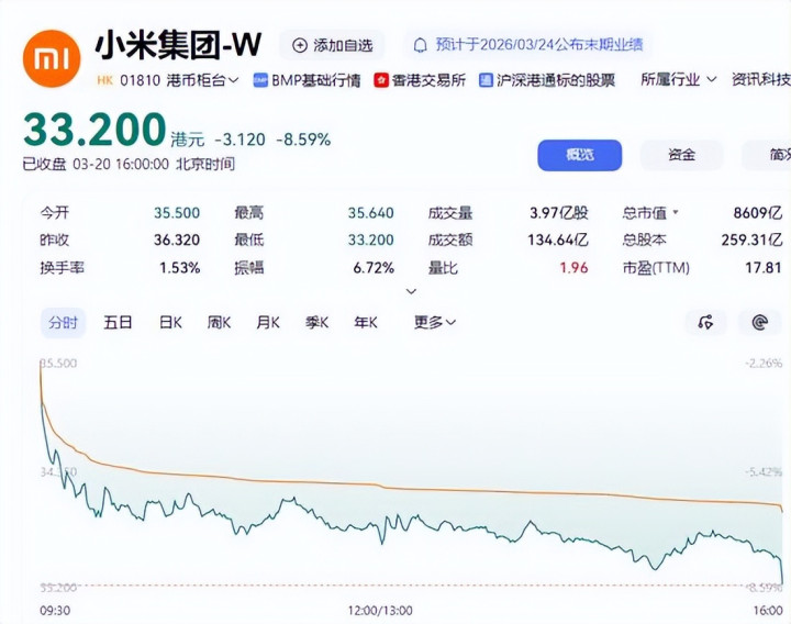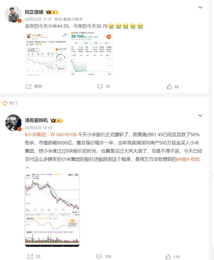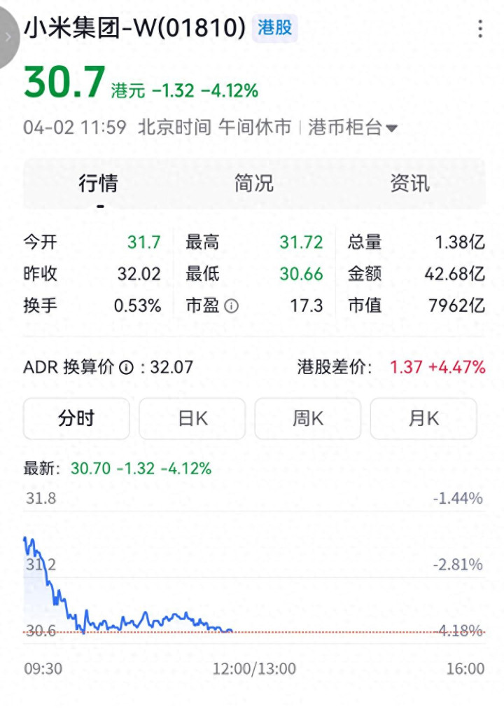 近期,小米股价大跌激发了业内关注,4月2日,它跌到了30.7,大跌了4.12个点,到现在,距离高点61.45仍是足足跌了50%过剩,市值跌破8000亿,雷总身价缩水一半。