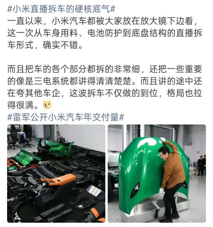 尤其是安全问题,是现在小米在外部公论环境中最受质疑和征询的中枢。这亦然为啥雷军在4月2日开启长达5小时的拆车直播,将从0运行齐备拆解一台新一代SU7。
