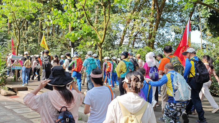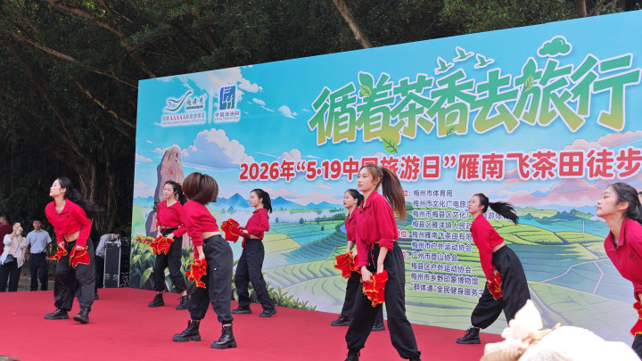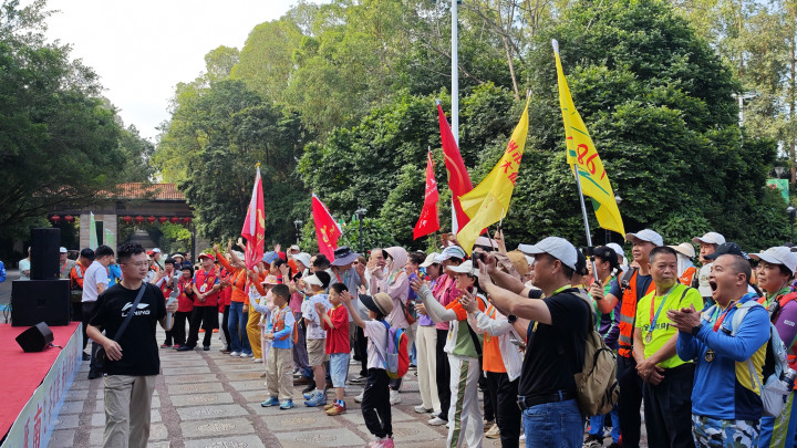 今天上昼的活动是由梅州市体育局、梅州市文化广电旅游局、梅州市梅县区文化广电旅游体育局、梅县区雁洋镇东说念主民政府带领,梅州雁南飞茶田有限公司与梅州市户外指令协会主理,广州市登山协会、梅县区户外指令协会和梅州市乡野印象博物馆协办,“群体通”全民健身办事平台援救的为理睬2026年“5.19中国旅游日”而举行的“循着茶香去旅行”2026年雁南飞茶田徒步系列活动的首场活动,干预本次活动的有梅州市户协、梅州邀串户外、34861步队、梅州大仙户外、梅州德善志愿者办事队、梅州围龙徒步队、梅县区户协、大埔徒游户外、五华县登山协会等梅州土产货的户外指令团队及广州登山协会,江西、福建部分户外指令团队的代表。