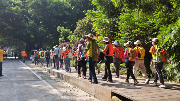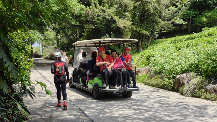活动全程约8公里,走的基本王人是林荫水泥路,怕晒的一又友也毋庸顾忌被紫外线灼伤。每一个路口王人有雁南飞的责任主说念主员为旅客指令阶梯并提供究诘办事,途中有几处免费提供茶水给旅客饮用,走累了还不错乘坐景区内的不雅光车。