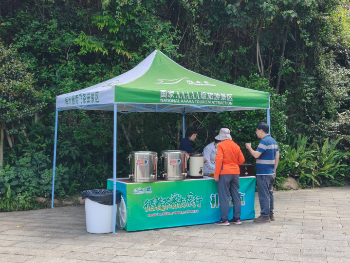 旅客还不错在旅客办事中心和“茶情阁”免费试吃雁南飞茶田自产自销的茶。