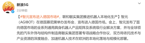 [CNMO科技音书]近日,智元(AGIBOT)在德国慕尼黑举行发布会,崇拜告示进击德国市集,并推露面向当地市集的全系列通器用身机器东说念主居品矩阵及系统级行业惩办决议。发布会上,智元与众人汽车外饰与结构件领军企业敏实集团签署专项战术合营公约,两边将通过本领与产业资源的深度整合,加快机器东说念主本领在欧洲的腹地化落地与鸿沟化期骗。