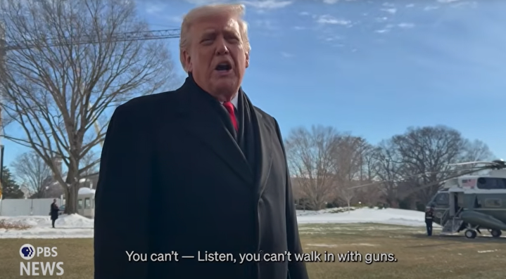 [环球网报道]据美国公共广播电视公司(PBS)报道,针对美国联邦执法人员近日枪杀一名美国男子事件,美国总统特朗普当地时间1月27日接受采访时表示,“你们不能携带枪支”。美国杂志《福布斯》称,特朗普的言论引发强烈不满,他的主张与美国拥枪权利组织决裂。