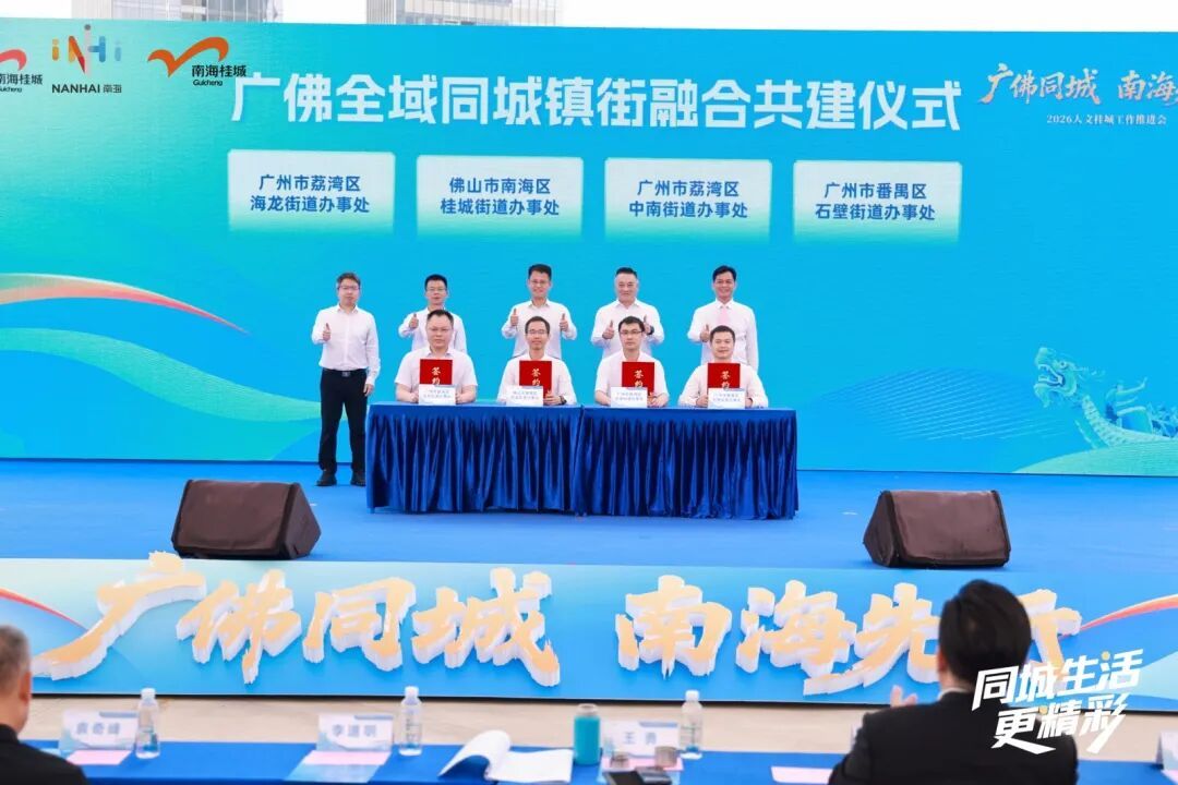 在广佛全域同城镇街交融共建典礼上,桂城街谈与广州荔湾区中南街谈、海龙街谈,番禺区石壁街谈联袂,将在片区蓄意、社会处置、产业协同、民生分享等鸿沟兑现深度交融,推动广佛同城从“物理相加”走向“化学相融”。