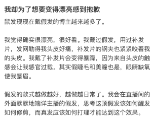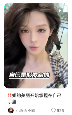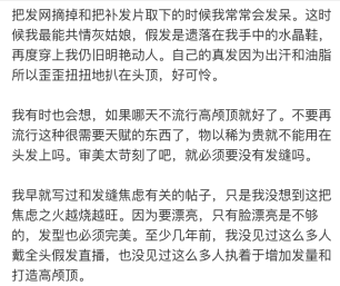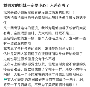 这些假发带来的痛楚和反作用,以及为了变好意思需要付出的戮力,简直无法从假发告白和网红宣传中走漏。