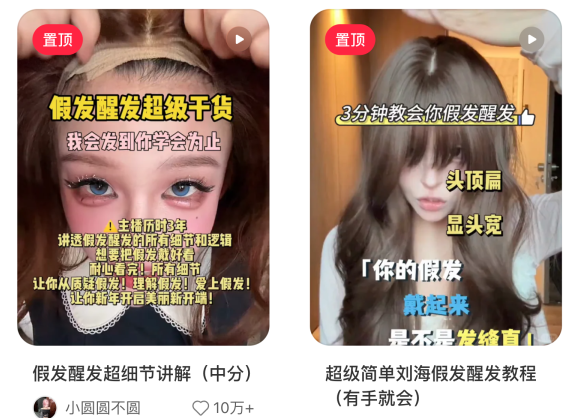除了大博主,社媒上还有许多自觉安利贴,假发必吃榜,以及商酌假发怎么戴、如何照料的内容。