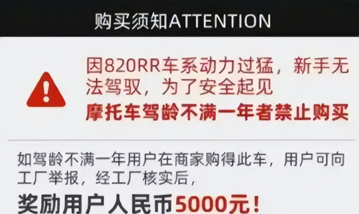 赛后,张雪曾说820RR这款机车他不会卖给不悦一年驾龄的生人。